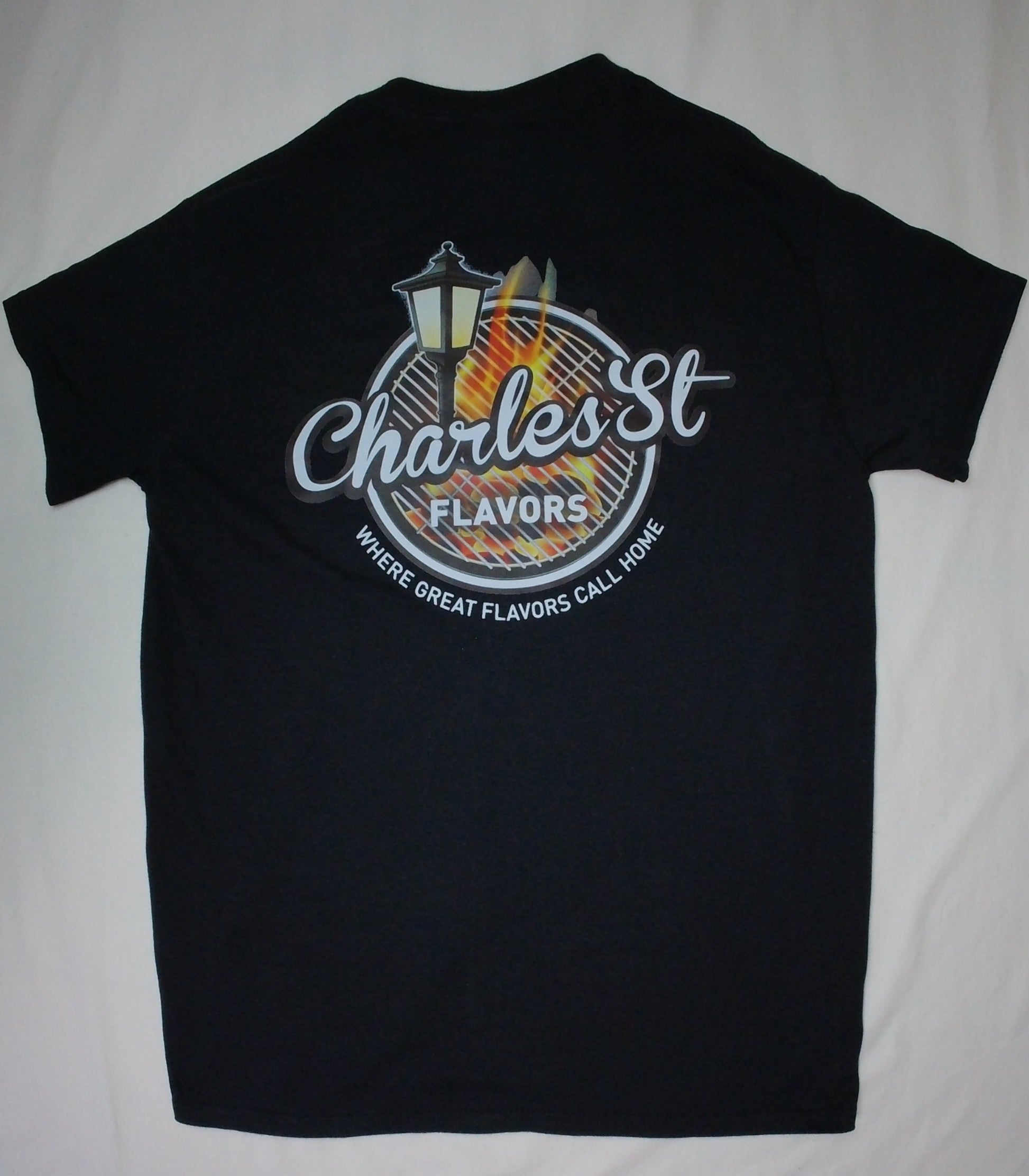 Show your culinary taste with this Charles Street Flavors black T-Shirt